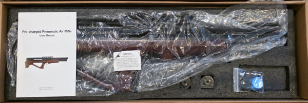 The Pinty Thumber .22 Cal PCP Bullpup. This is one solid and affordable PCP Bullpup. This is the exact model air rifle I reviewed on my October 10, 2024, review video. This rifle is “Brand New” but has been tested.” This rifle is fully regulated with a 3600-psi maximum fill pressure. This comes with two (2) 9-round magazines. The hard-wood stock is stunning, and the rifle is all metal, including the picatinny scope rail. This rifle is an outstanding performer in both accuracy and velocity. Check out the video which will show you the exact performance of this rifle. These are currently sold out and backordered. “Happy Shooting!”